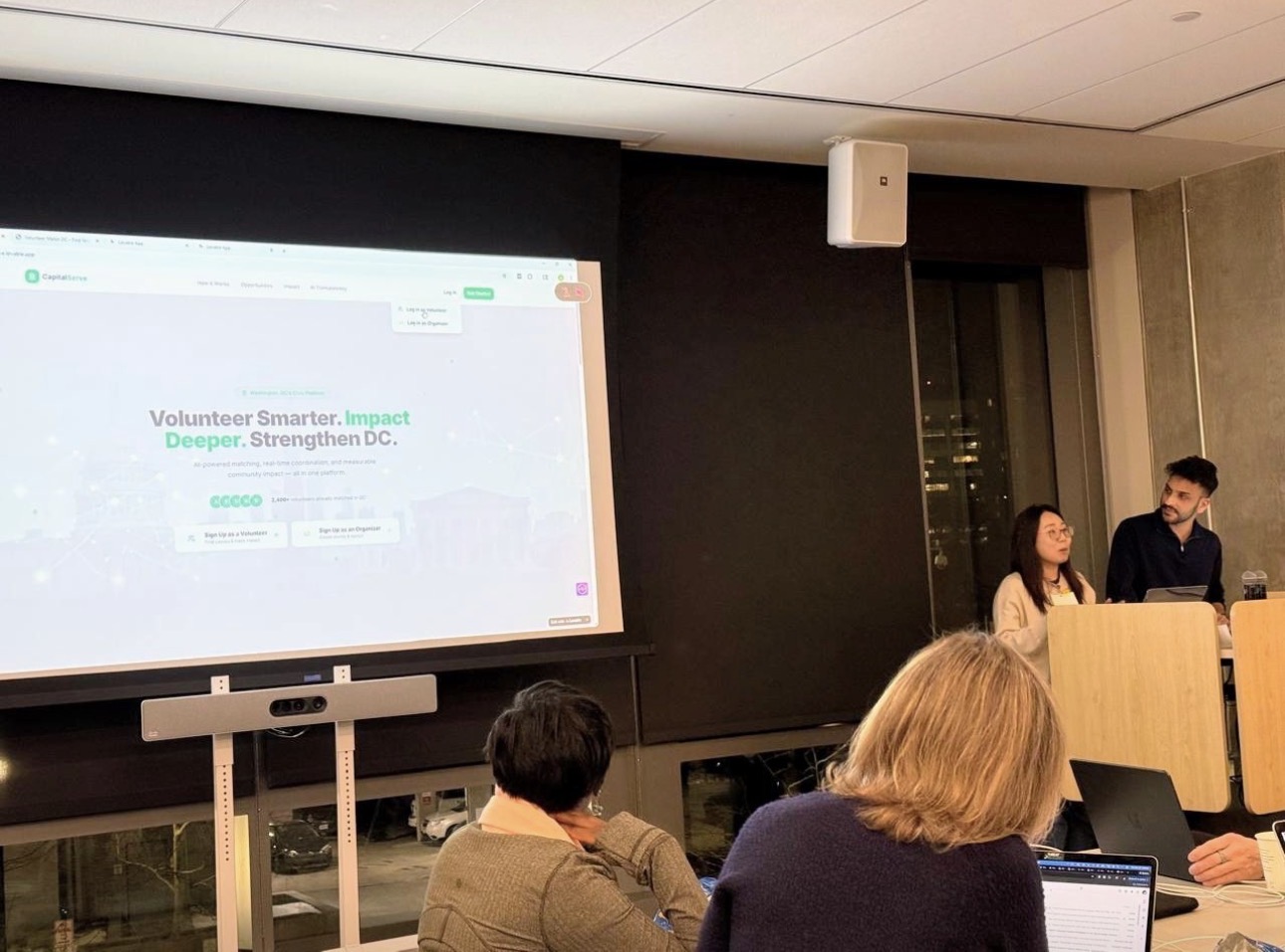 Presenting CapitalServe as a Finalist at the Lovable Hackathon organized by the Product Tank Washington DC chapter